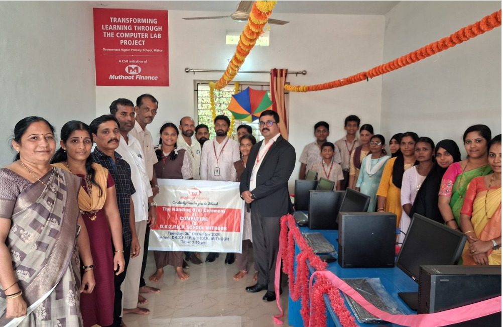 On December 30, 2025, Muthoot Finance strengthened its commitment to digital inclusion by launching the “Transforming Learning Through Computer Lab Project” at Dakshina Kannada Upper Primary School, Mithoor, Dakshina Kannada. As part of this CSR initiative, the company donated 4 desktop computers to the school, with a total investment of ₹1,10,000.